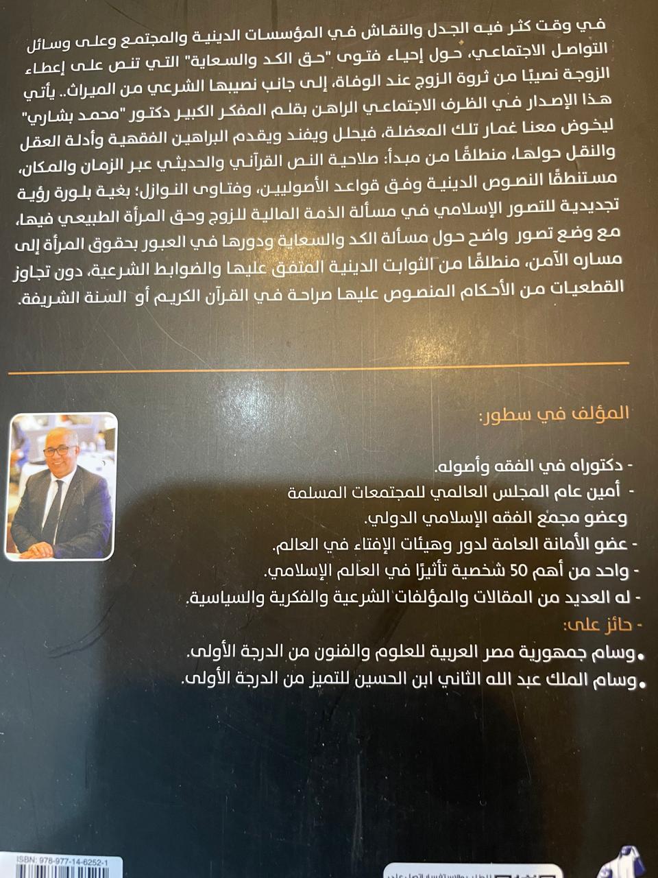 العنوان: حق الكد والسعاية: مقاربة تأصيلية لحقوق المرأة المسلمة. المؤلف: محمد بشارى. الطبعة: ط. 1. مكان النشر: القاهرة. الناشر: نهضة مصر للنشر. تاريخ النشر: 2023. الوصف المادي: 520 ص.؛ 22 سم. الترقيم الدولي الموحد: 1-6252-14-977-978.